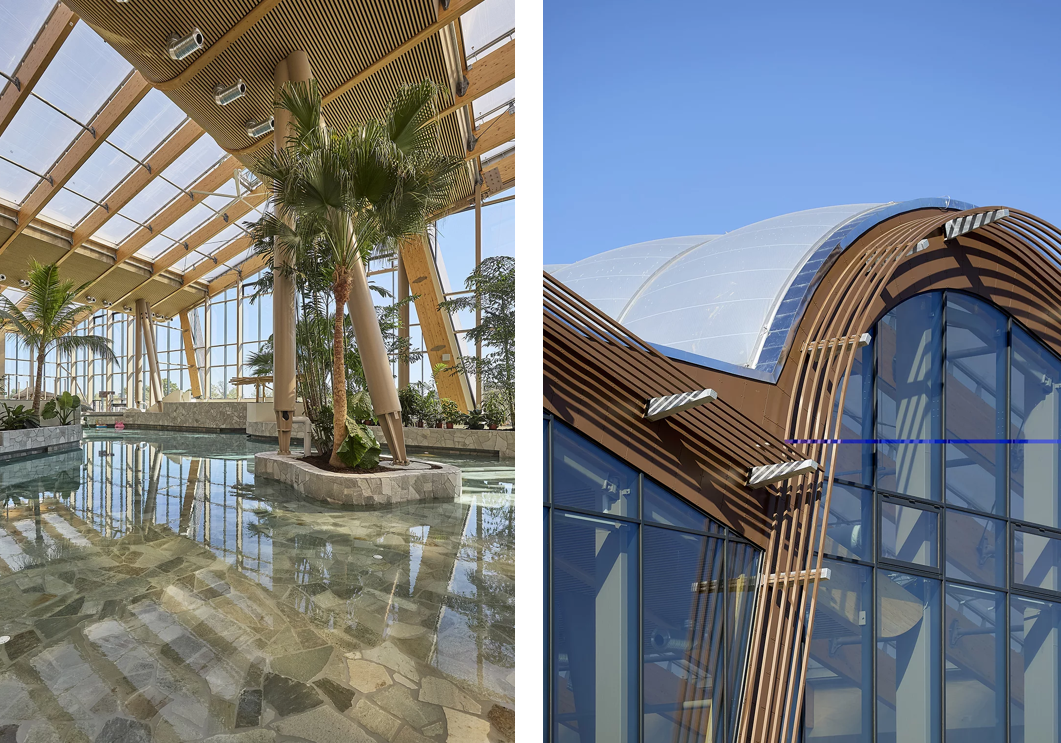 Aquamundo: Wellenförmige Dachkonstruktion aus PEFC-zertifiziertem Holz