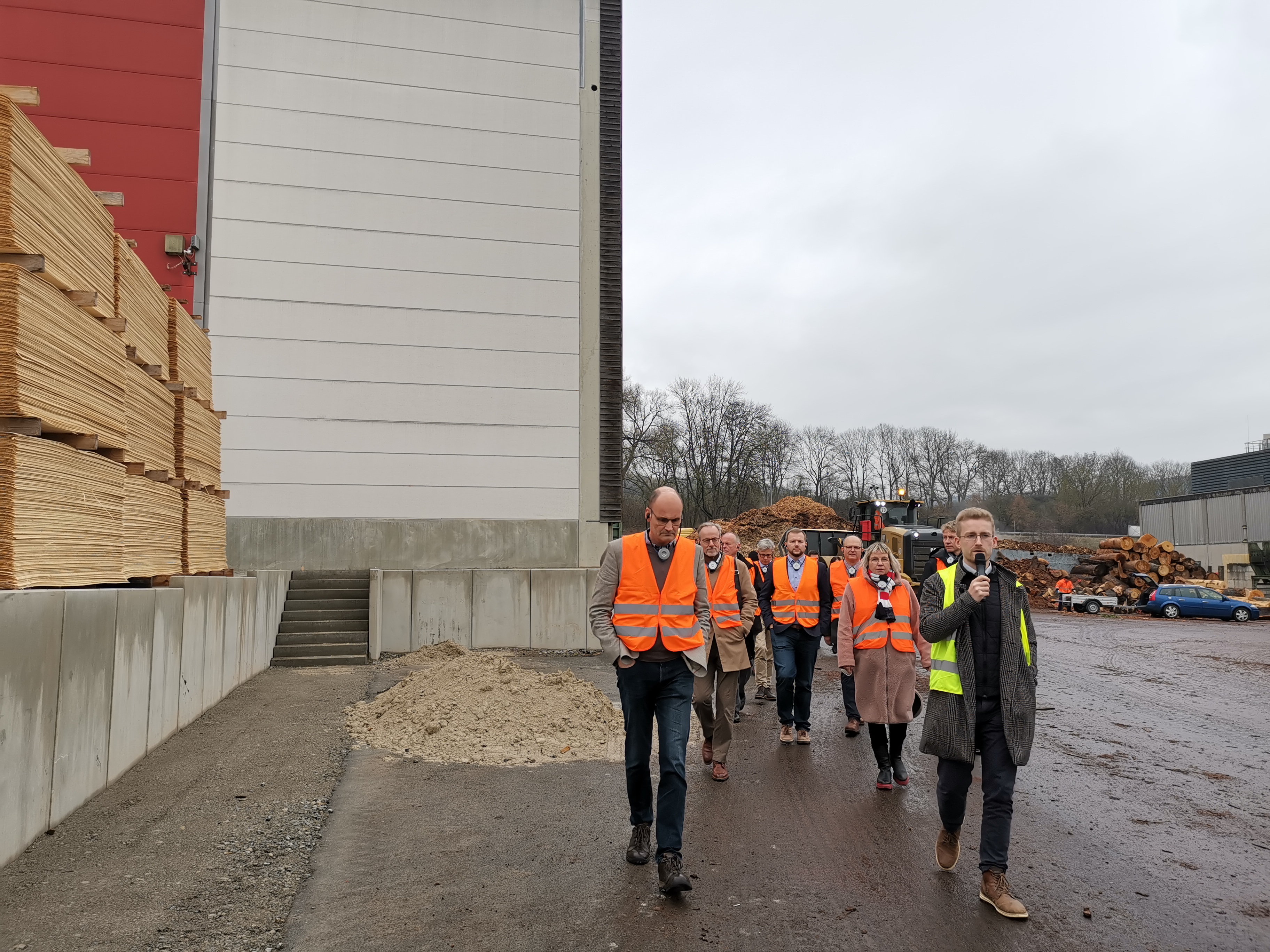 Eine Werksführung durch das Pollmeier-Werk gab den Teilnehmenden einen unmittelbaren Eindruck von der hochautomatisierten Produktion: In mehreren Gruppen erlebten sie den Weg vom Buchenstamm zum Hochleistungsbaustoff BauBuche.