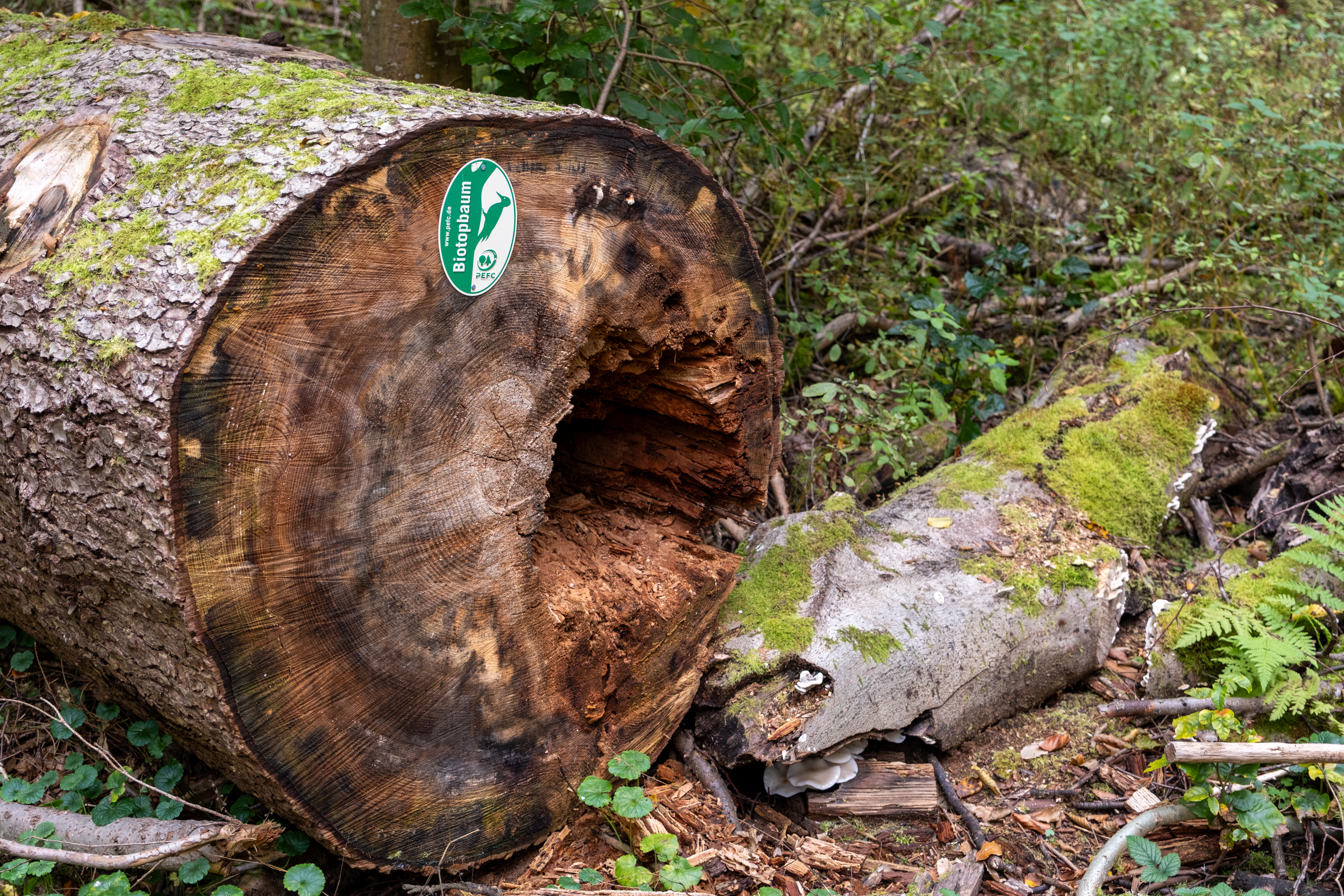 Der Stamm einer majestätischen Weißtanne darf als Biotopbaum im Forst verbleiben und Lebensraum für unzählige Pilze und Insekten bieten. © KOLLAXO Markt und Medien GmbH.