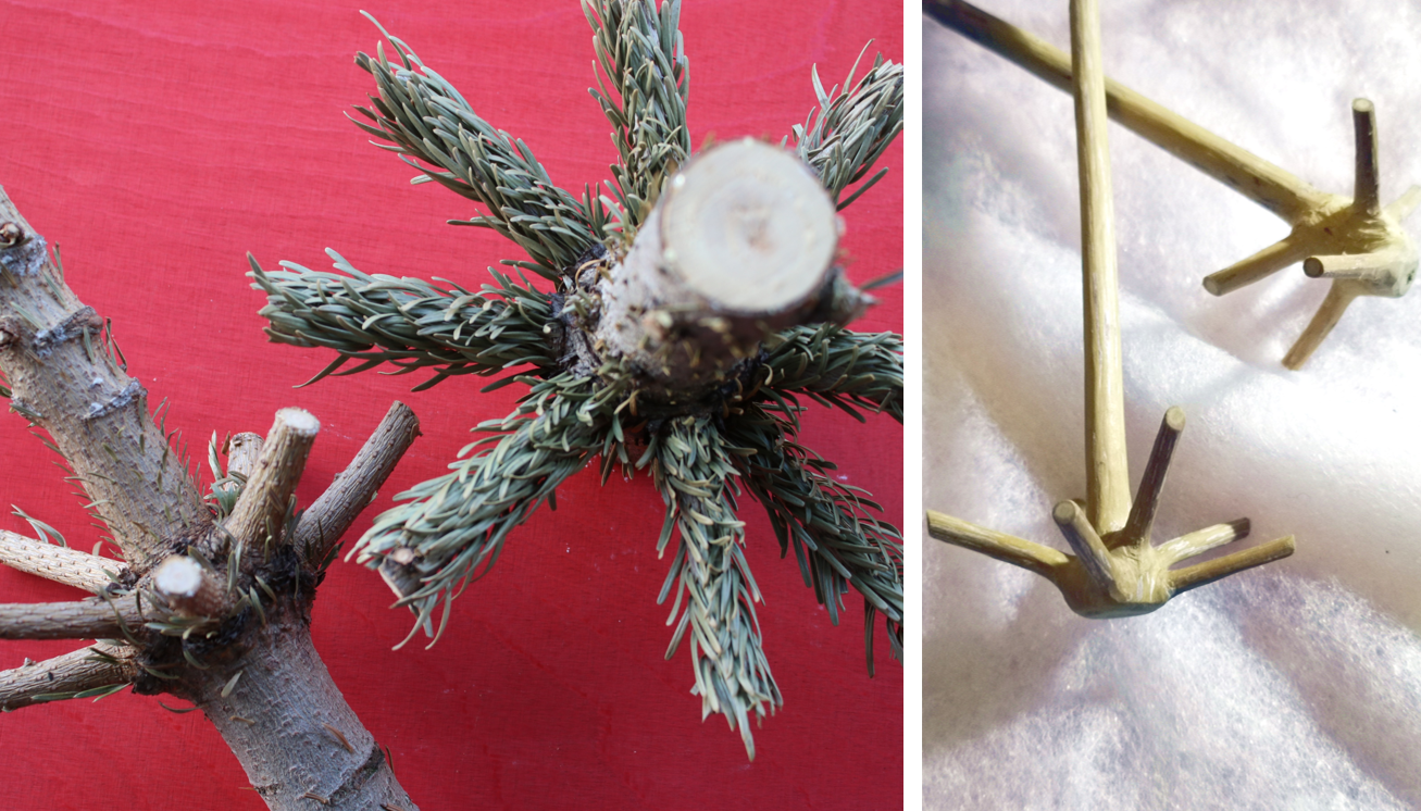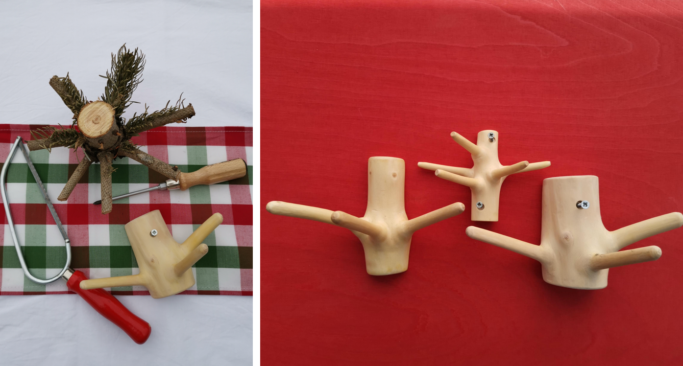 Astgabeln lassen sich zu nützlichen Haken verarbeiten. Zunächst sollte ein passendes Stück aus dem Stamm gesägt und halbiert werden. Mit Messer, Holzfeile und Sandpapier lassen sich die Rinde entfernen und das Holz glatt schmirgeln. An der Wand angebracht, hält der Haken Jacken und Mäntel an Ort und Stelle. Am Schreibtisch befestigt, hilft der Weihnachtsbaumhaken dabei, Kabel aufzuwickeln und ein Kabeldurcheinander zu verhindern.